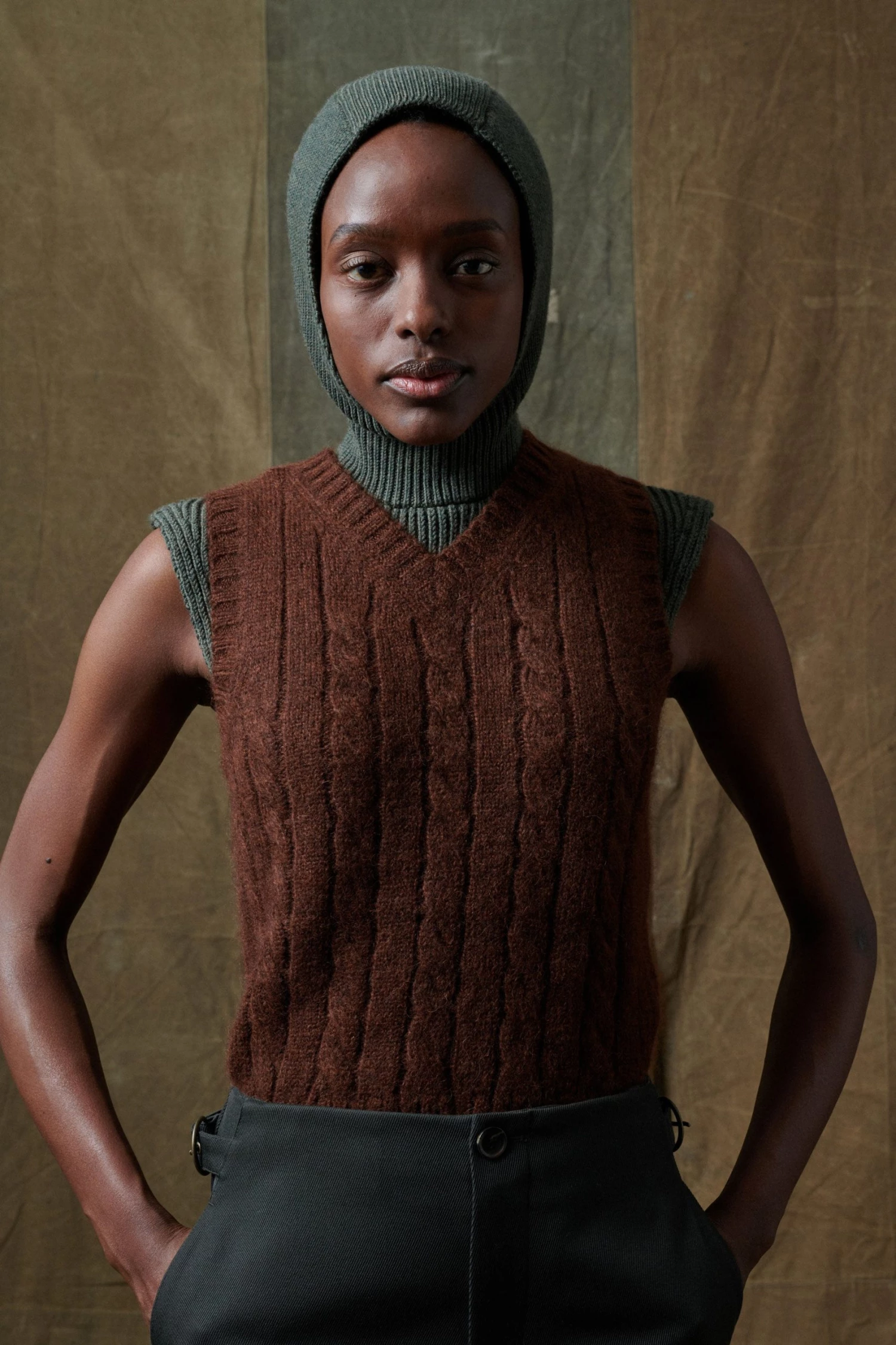 Sud est une cagoule en laine. Ce système permet d’être porté facilement sous un manteau ou d’une veste.