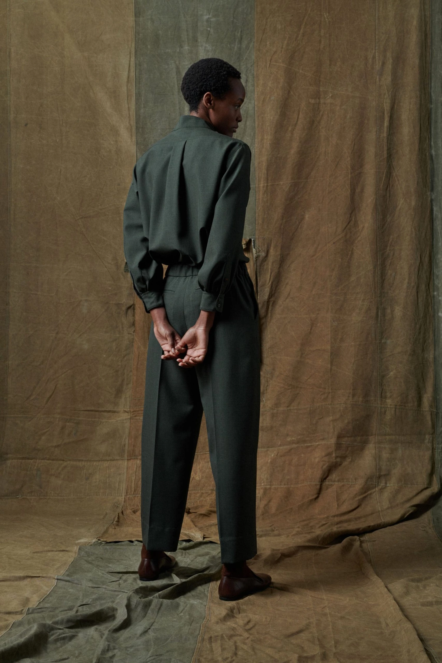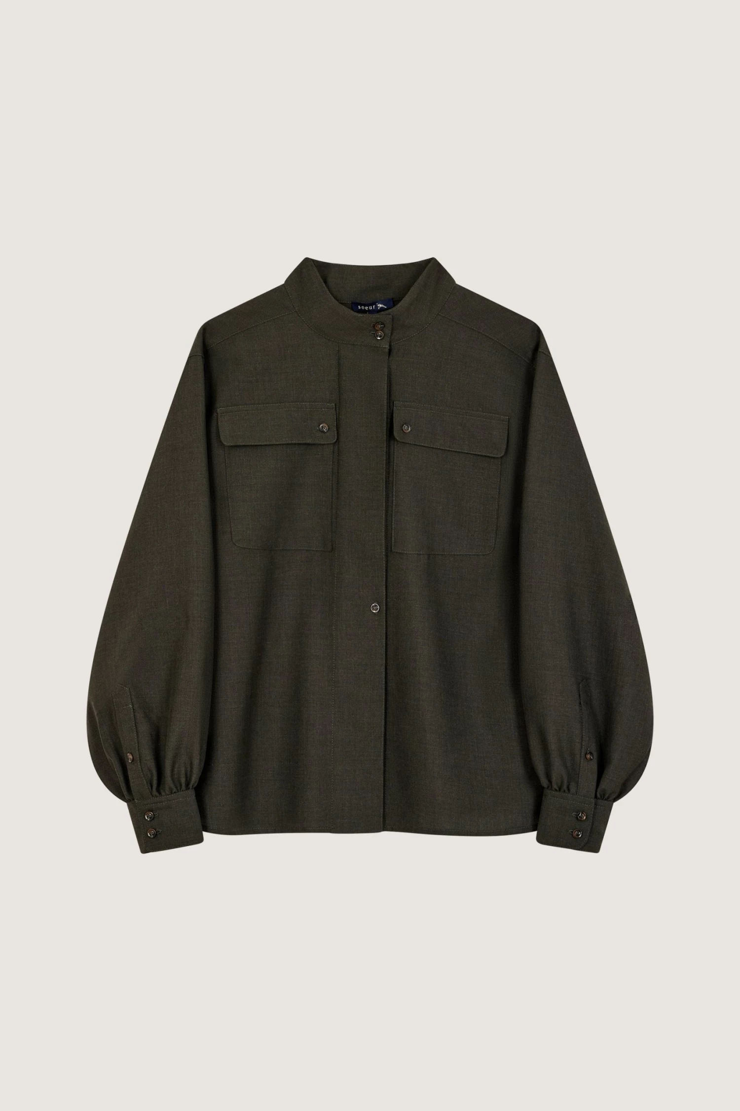 Rita est une chemise classique aux détails empruntés au vestiaire militaire. Elle est féminisée par sa matière en soie et laine qui est souple lui donnant un joli tombé. Elle arbore le col montant emblématique des collections Sœur et se ferme par une patte de boutonnage.