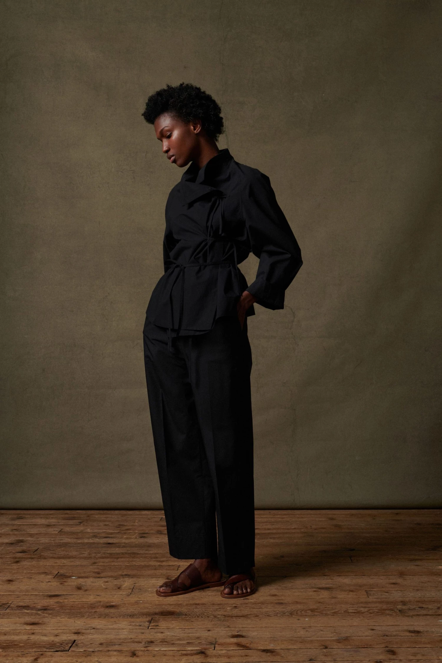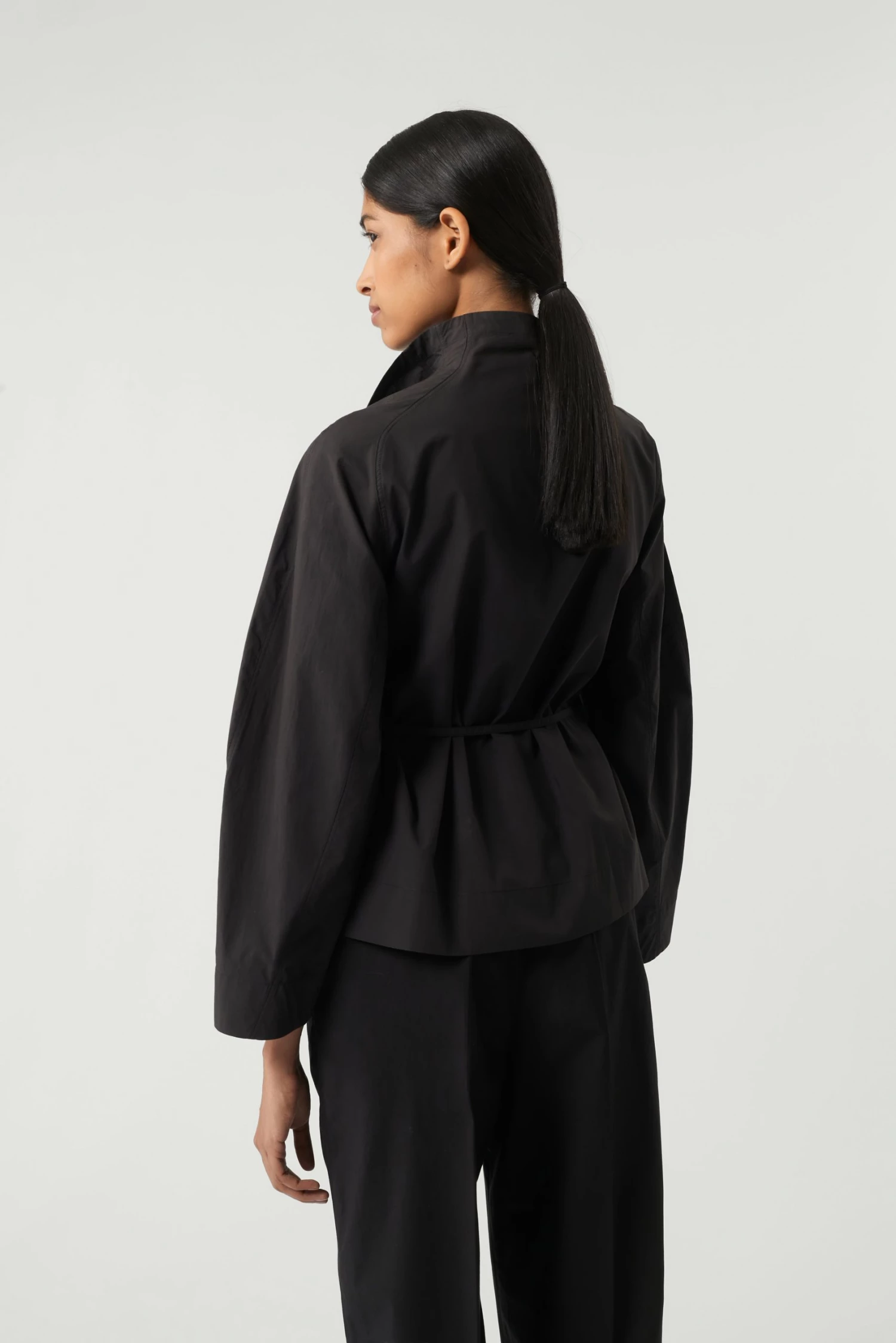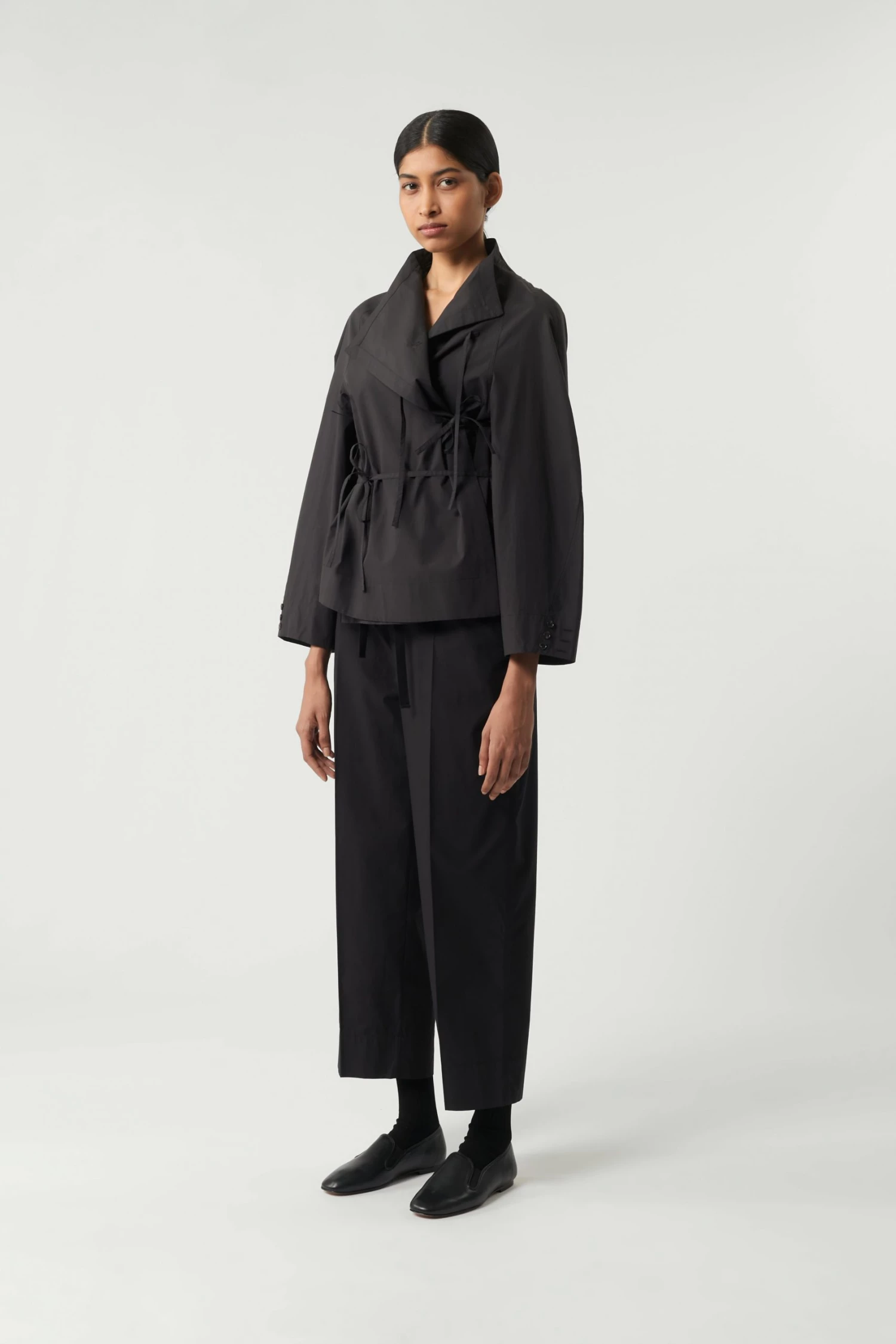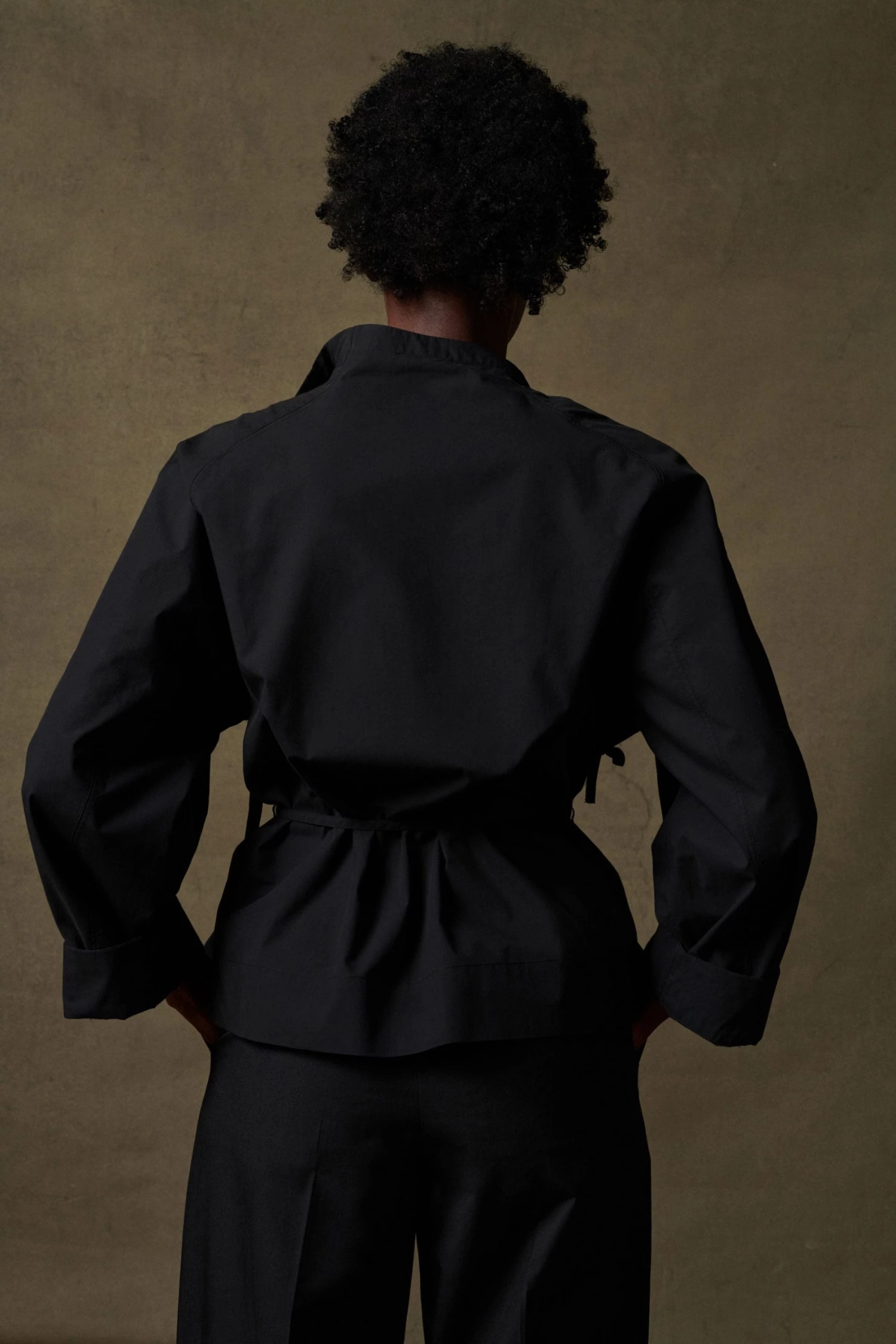 Spring est une blouse à l’allure « couture » et à la construction raffinée. C’est un modèle cache cœur qui se referment jusqu’au col par un jeu de liens à la taille et à la poitrine. Le volume droit est modulable, se nouant et s’adaptant au corps selon les envies.