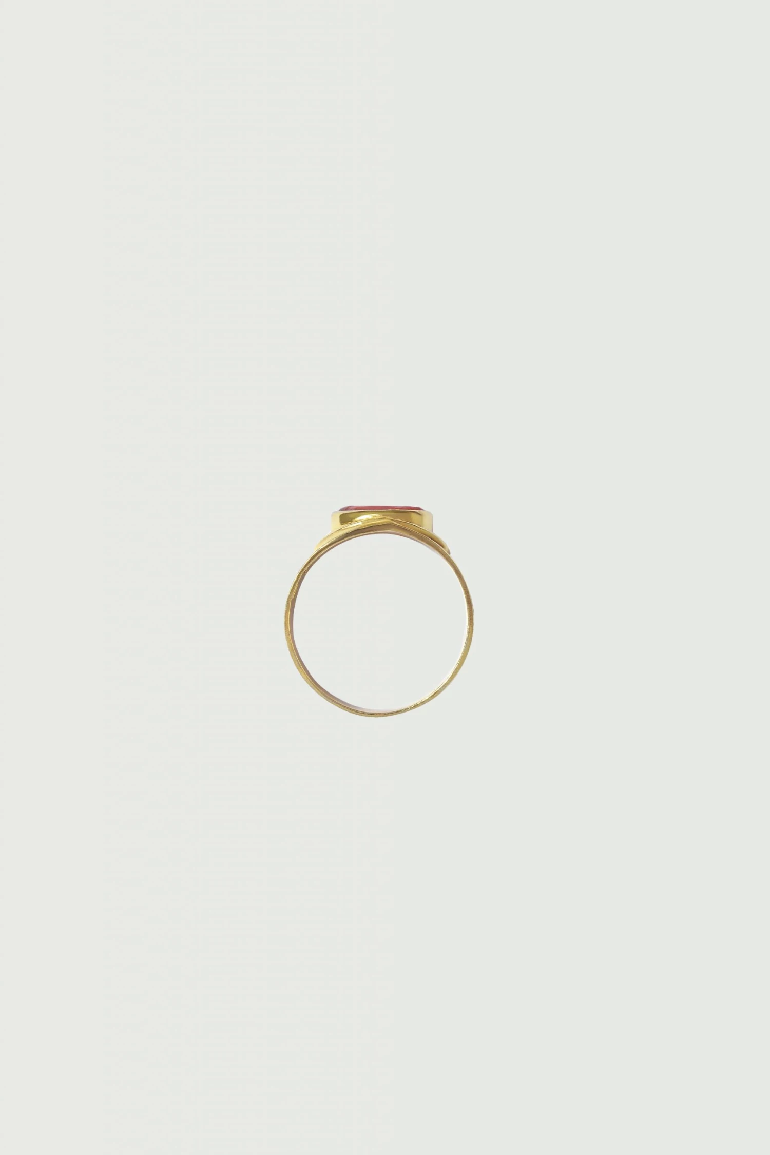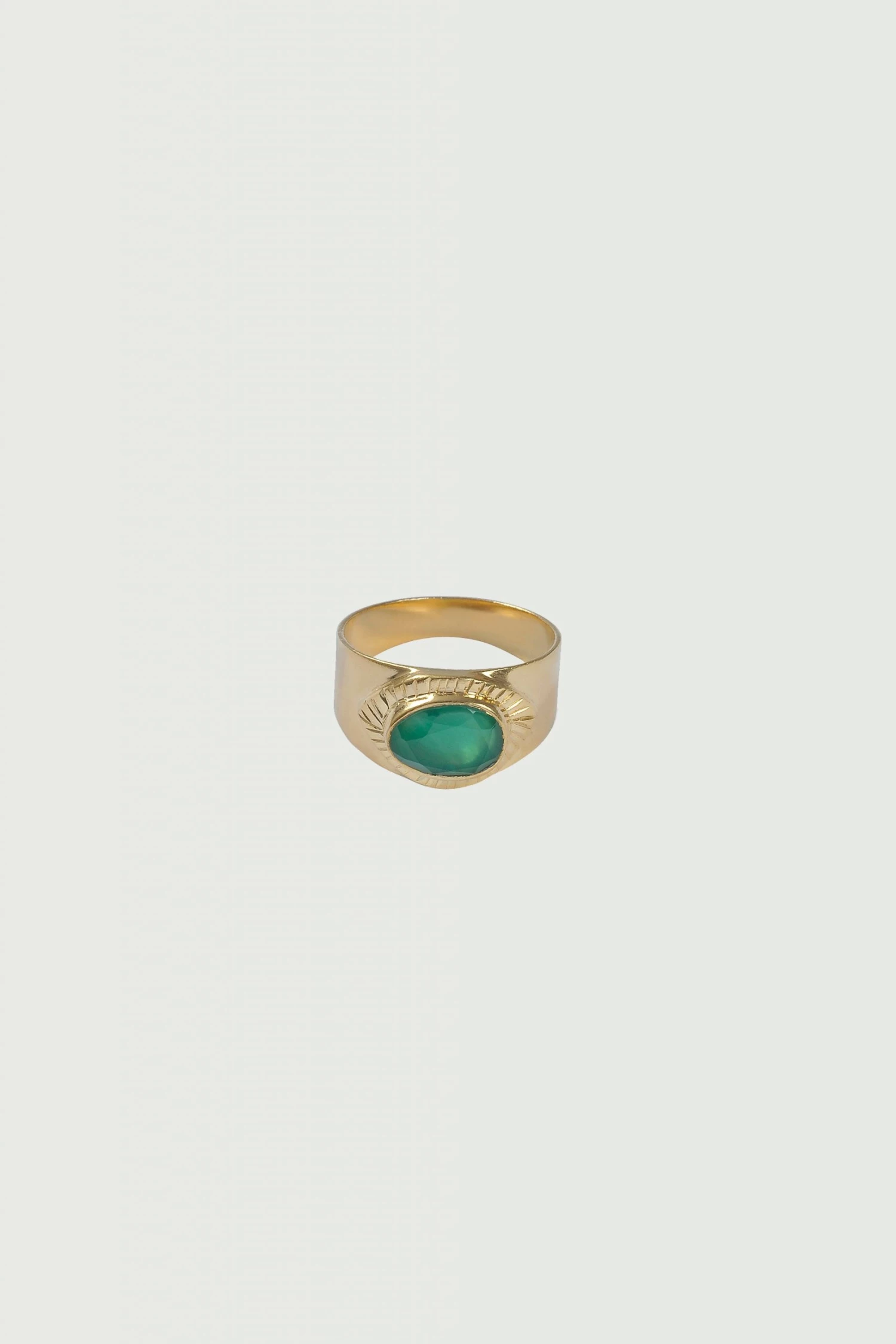 Chevalière ornée d’une pierre verte. Poids 3,45g.