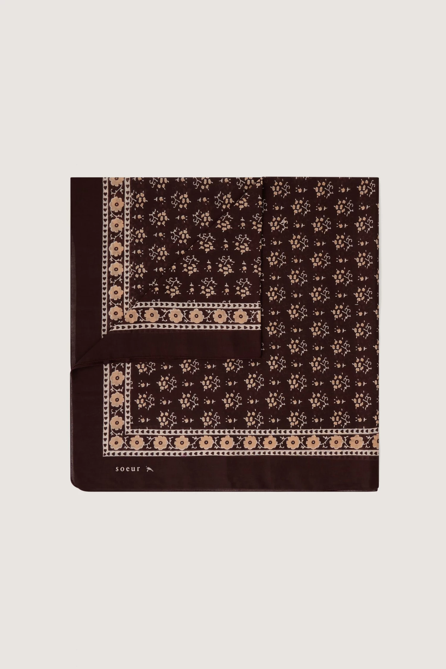 Foulard en voile de coton prune/beige
