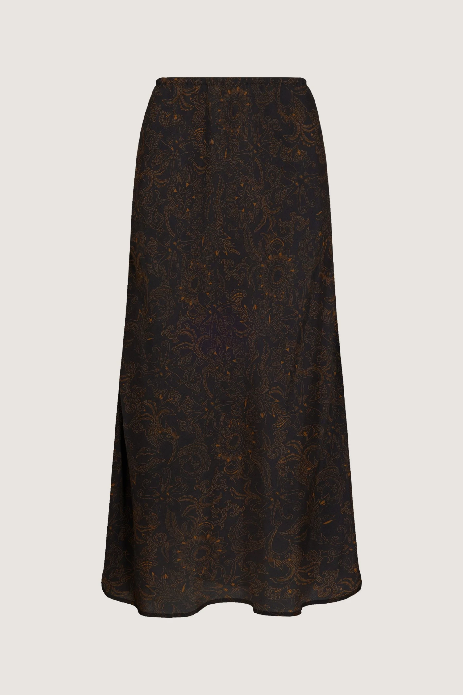 Jupe longue en sergé fluide imprimé noir et noisette