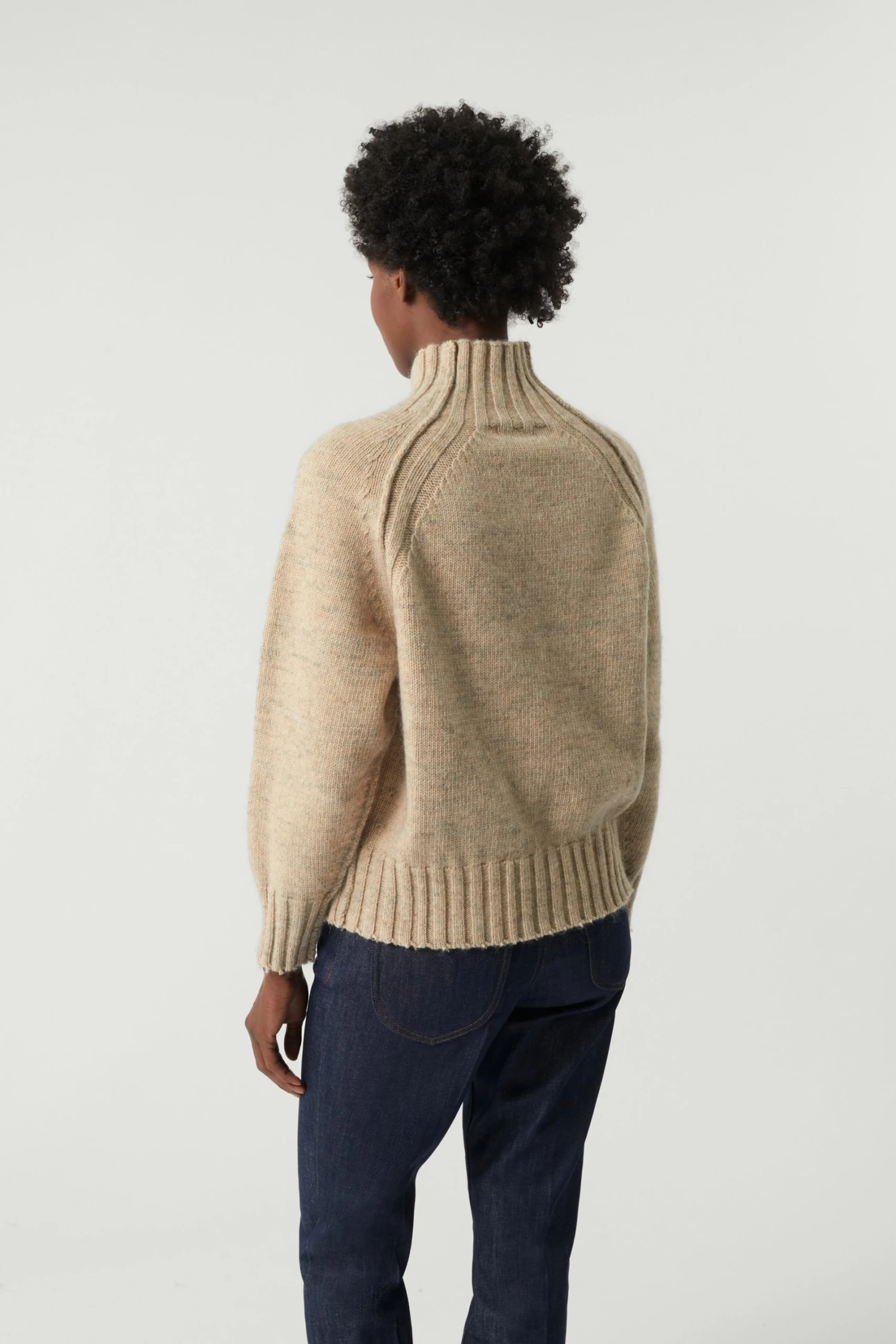 Slowly est le pull d’hiver par excellence. Il est réalisé dans un tricot de laine chaud et épais et possède un col montant. C’est un classique revisité par un jeu d’effilochage. Les fils tirés en bas de manche et bas du pull donnent un effet « décousu ».