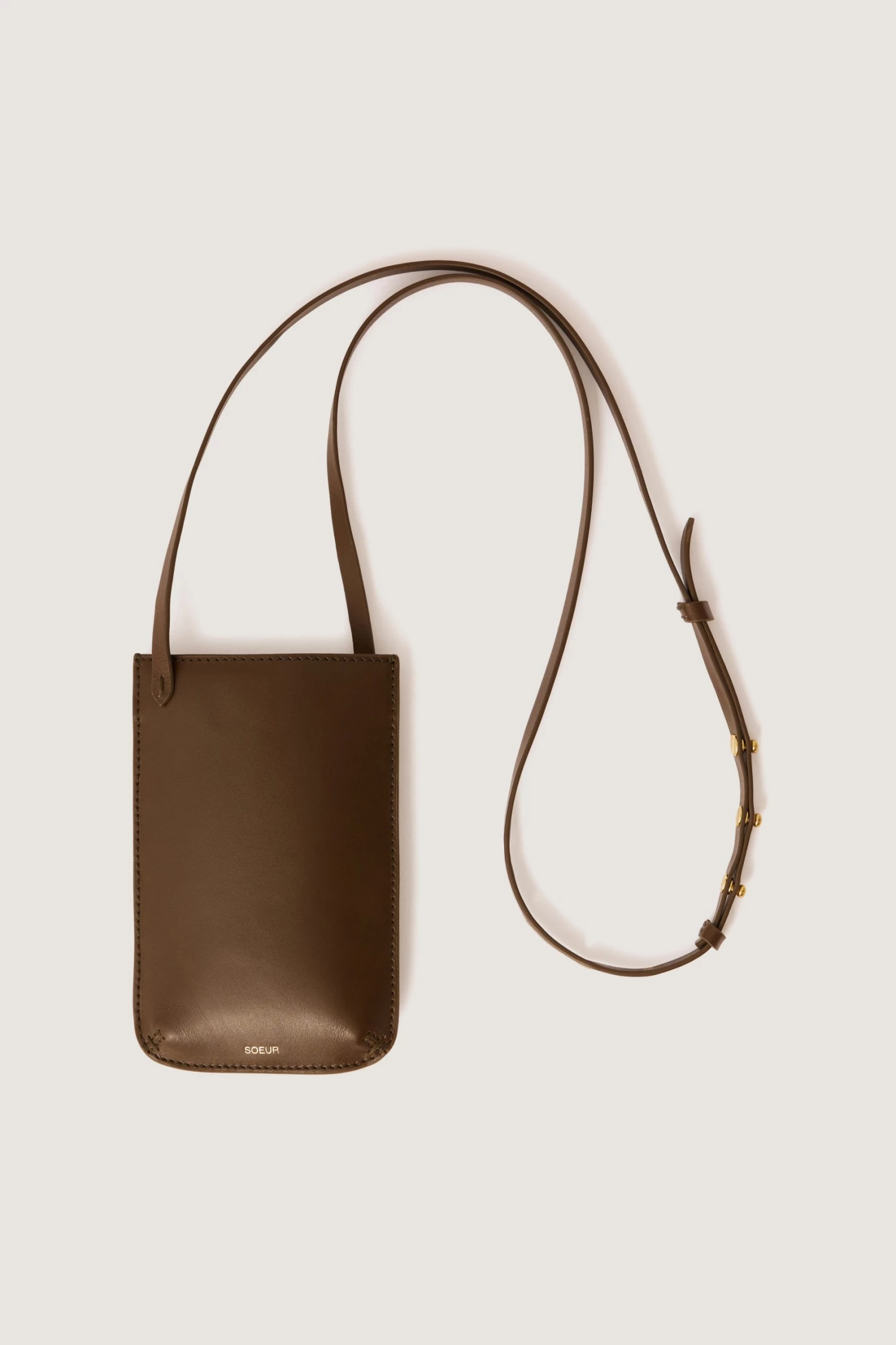Noé est un étui en cuir lisse décliné dans les coloris de la saison et présente un travail de pinces bombées qui maintiennent le volume. Il possède un système de réglage qui permet un meilleur maintien de la bandoulière.