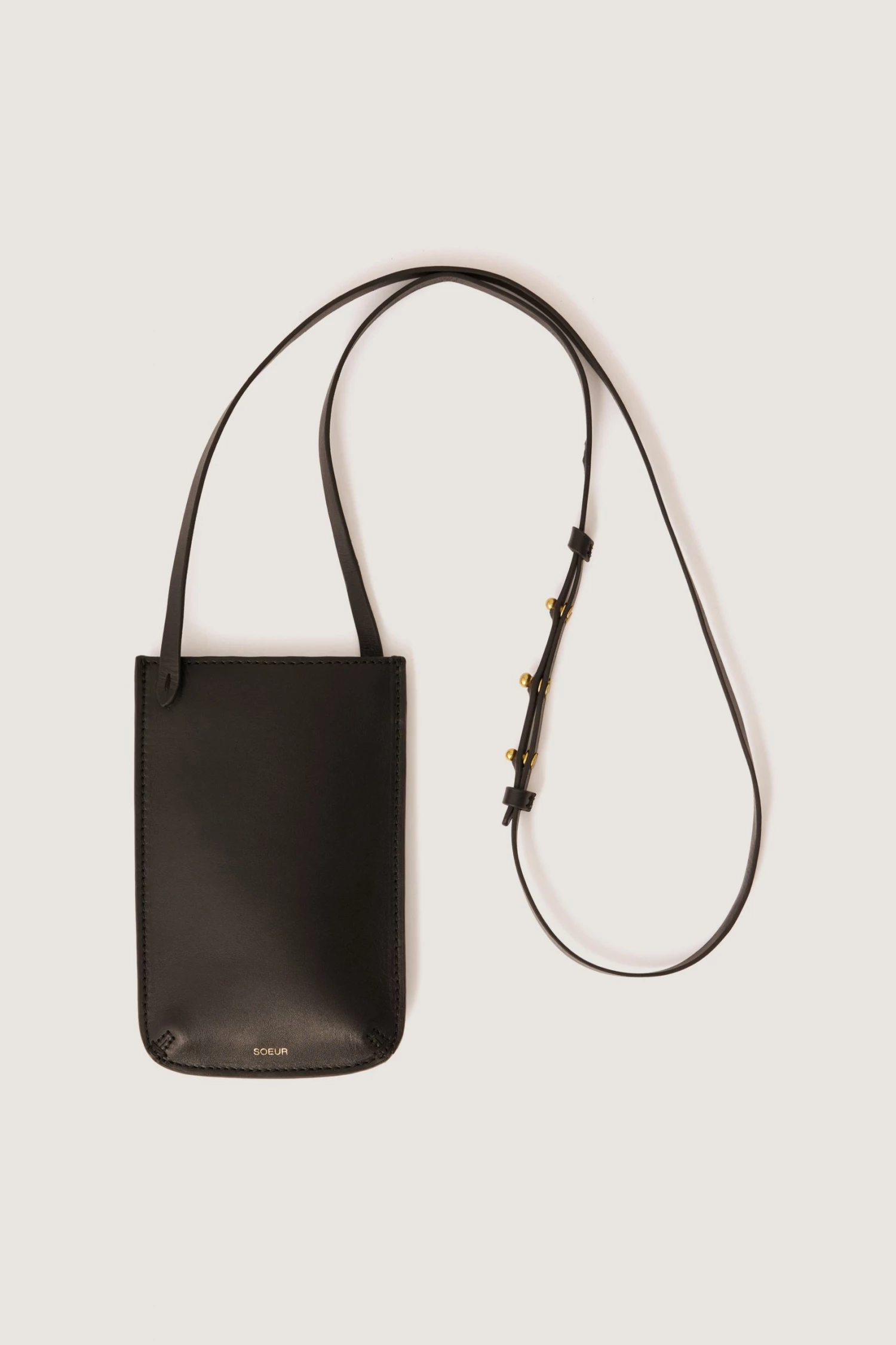 Noé est un étui en cuir lisse décliné dans les coloris de la saison et présente un travail de pinces bombées qui maintiennent le volume. Il possède un système de réglage qui permet un meilleur maintien de la bandoulière.