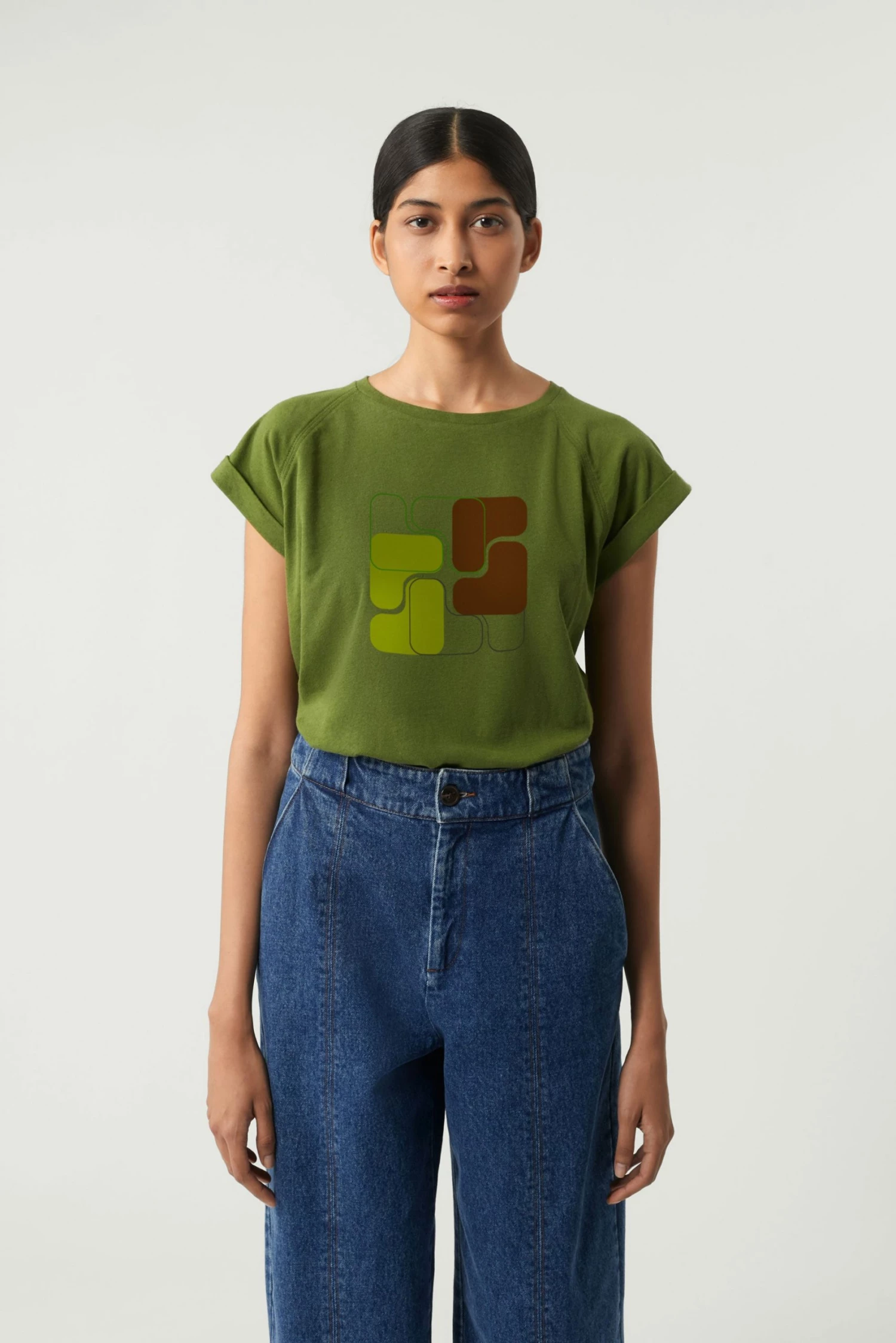 T-shirt sérigraphié en jersey de Coton et Lin vert