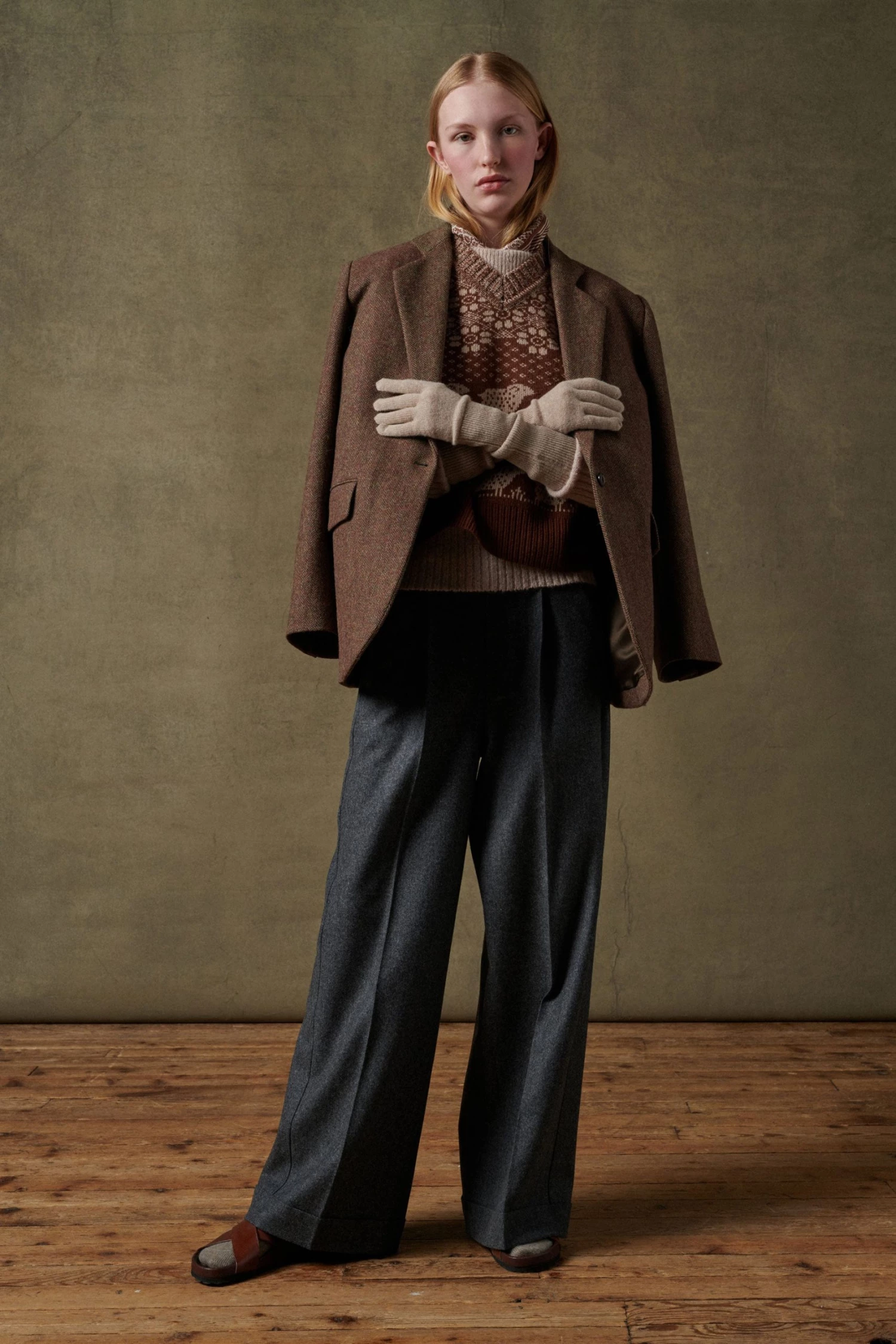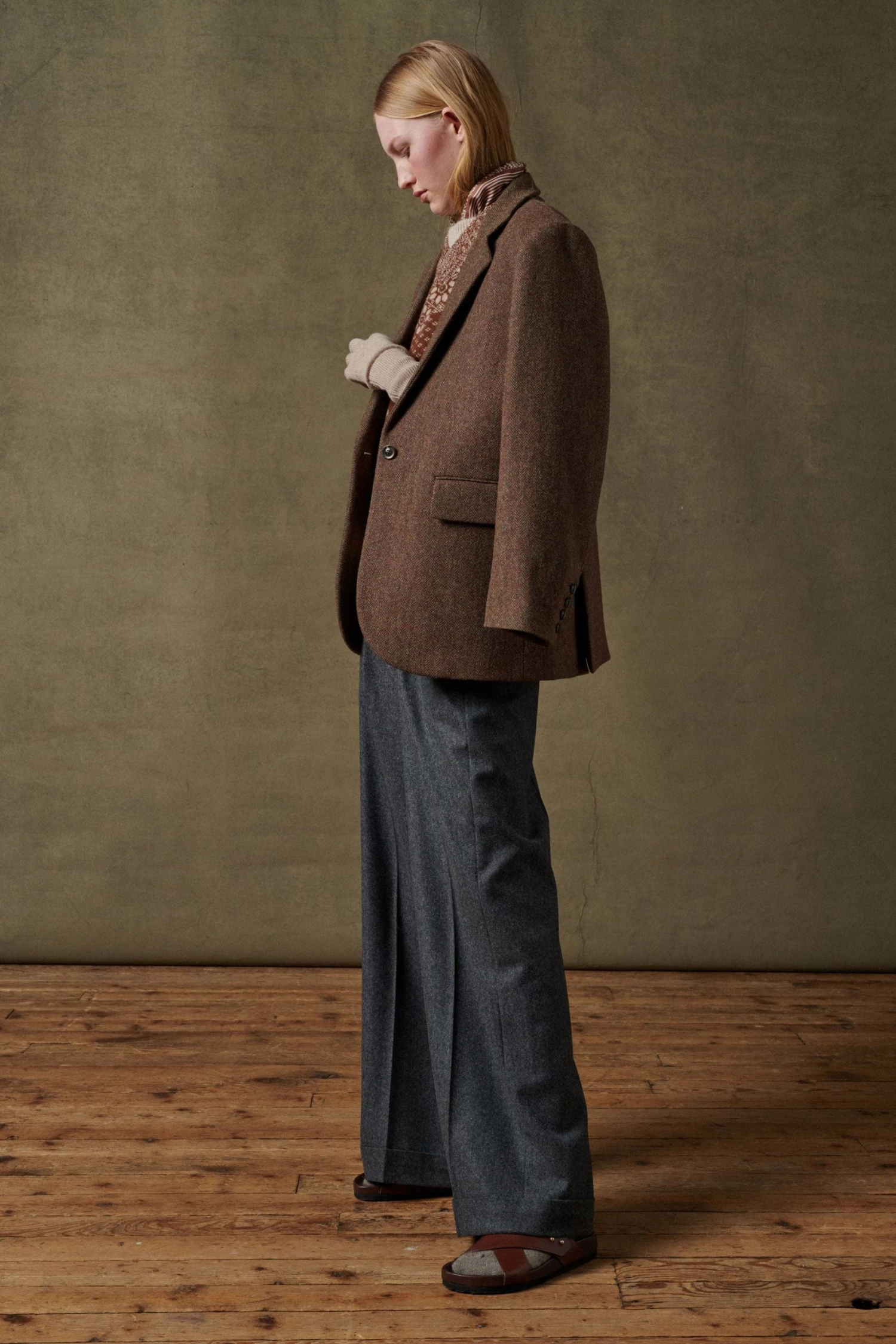 La veste Sèvres reprend tous les codes d’une vraie veste de tailleur. Il s’accorde au pantalon Roméo tout deux composés de sergé de laine, matière épaisse et masculine, aidant à maintenir le volume et les découpes de ces modèles structurés.